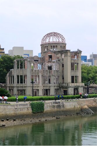 広島城を見学したあとは、原爆ドームへと向かいました。 元安川のたもとにある原爆ドームは、1945年8月、広島市に投下された原子爆弾の悲惨さを今に伝える被爆建造物です。 もともとは1915年に竣工した広島県物産陳列館で、チェコ人建築家のヤン・レツルが設…
